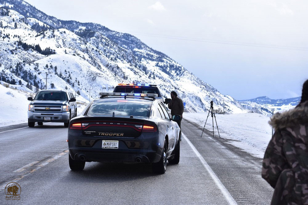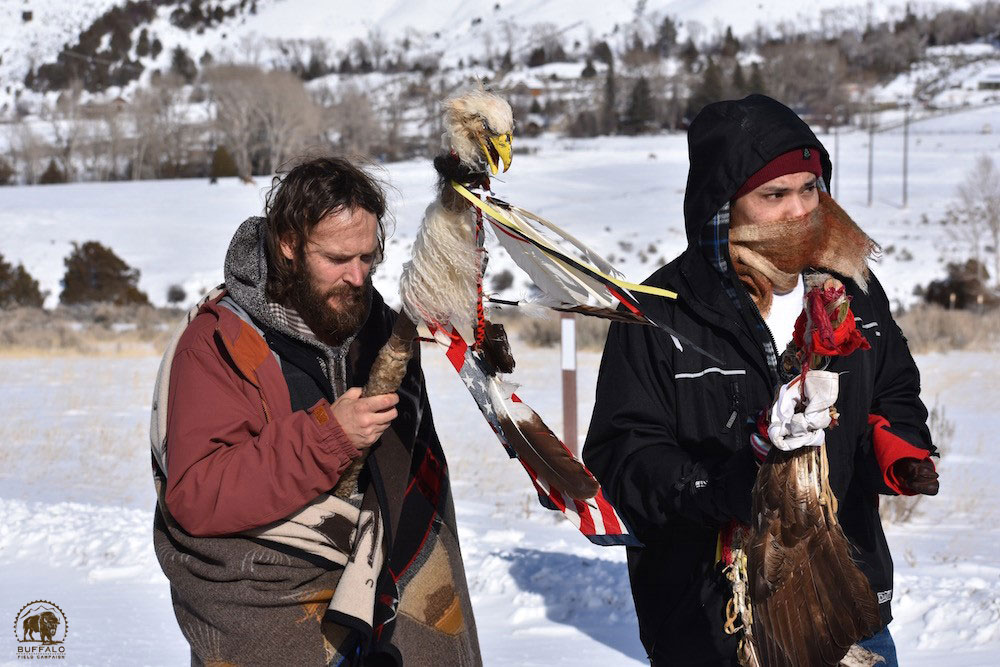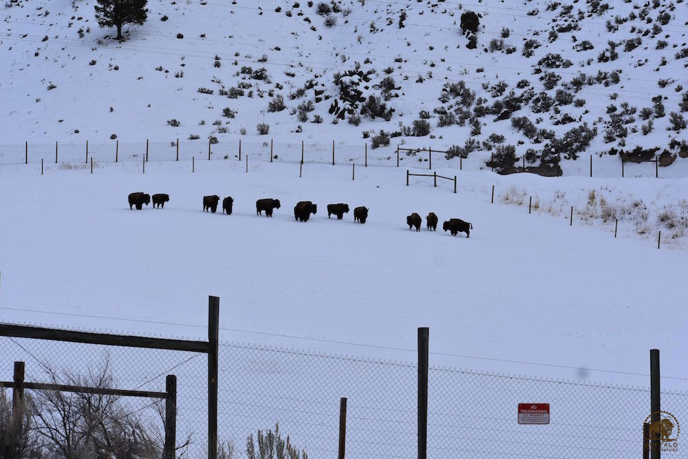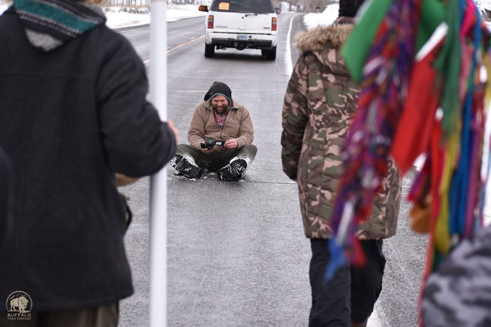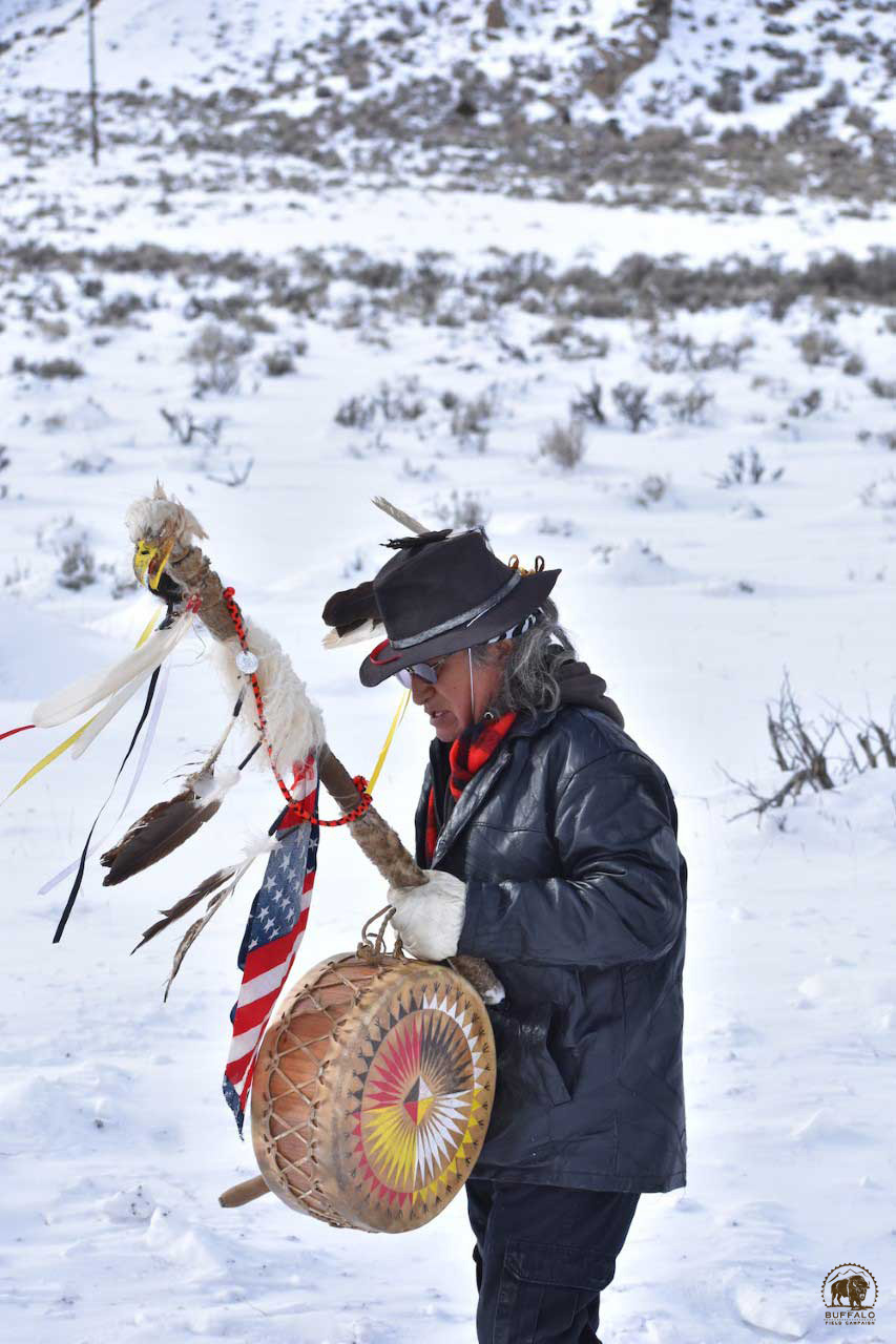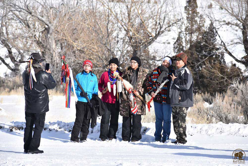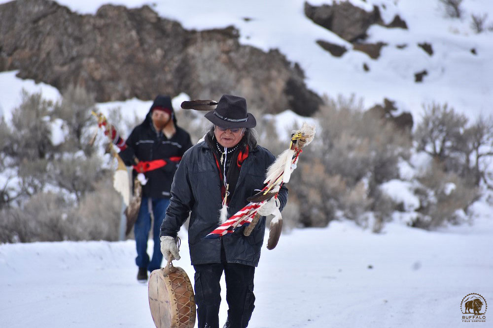 On Friday, February 14, more than 40 of us gathered near Yankee Jim Canyon in Montana’s Gardiner Basin, to commence the 3rd Annual Rosalie Little Thunder Memorial Walk. This walk is our way of paying homage to our co-founder, Rosalie Little Thunder, Sicangu Lakota Oyate, who, in 1999, walked 500 miles from Rapid City, South Dakota, all the way to the Gardiner Basin in Montana. Rosalie’s walk was a form of prayer for the buffalo and protest against their senseless slaughter. Rosalie passed away in 2014, so this walk is our way of keeping her memory alive and honoring all the incredible work she did — and continues to do from the Spirit realm — for the last wild buffalo. Friends, relatives, and loved ones of Rosalie’s braved treacherous winter road conditions to come together to honor this amazing woman. We met up near Yankee Jim Canyon, near the north end of the Gardiner Basin, where we would walk south to Beattie Gulch, right at Yellowstone National Park’s north boundary. Recognizing we were to complete a mere fraction of Rosalie's achievement, with an 11 mile walk, we shrugged off the blizzards and icy roads we traveled through, as well as the cold and wind in the air, and any ailments people were feeling.