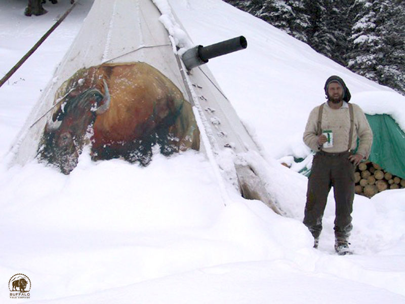 Co-Founder Mike Mease, in front of the teepee he lived in throughout his first 12 years of service as a defender of buffalo.