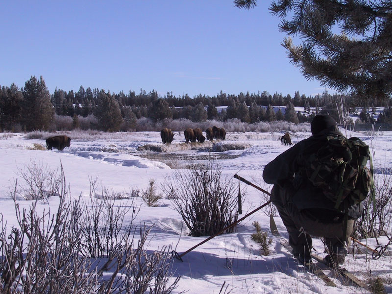 If you have ever wanted to join BFC on the front lines, now is the time. Buffalo migration is underway in both the Hebgen (west) and Gardiner (north) Basins. We are running full patrols along both boundaries, but we are short on field volunteers to help us keep up with the various locations. We are in dire need of able-bodied field volunteers who welcome the challenge of extreme winter temperatures and deep snow. Don’t know how to ski or snowshoe? Don’t worry - we will teach you! And don’t fear the cold, either, as we can outfit you to keep you warm and dry. This season is threatening to be a very deadly one for our wild buffalo friends, and we need as many buffalo defenders as possible to join us in documenting all actions against the buffalo, and challenging the forces that harm them. While field volunteers are sorely needed, there are multiple opportunities available to volunteers that don’t involve standing in the cold with the buffalo. We can always use help at camp, in the office, around the cabin, and we will need lots of folks to help us prepare and carry out our upcoming Week of Action (February 14-20), and to help us fill the halls of Helena, Montana’s capitol, and defend the buffalo against the rancher-heavy legislature which is in session this year. If you have the passion and desire, we can put you to work to help wild buffalo!