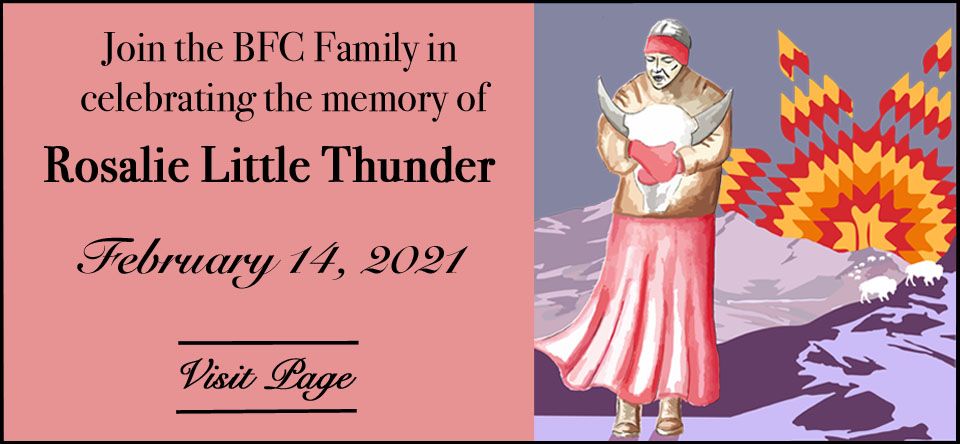 Due to Covid-19, sadly, we will be unable to gather together in person this year for the Walk. But, we fully intend to honor Rosalie’s memory and celebrate her amazing life, and we invite you to join us. Here we are gathering stories, videos, written words, shared experiences, memories, etc. Whether you knew her or never had the honor of meeting her in person, because you love the buffalo and support the work of BFC, we know she touched your life in some way. Her incredible work for the buffalo was just the tip of the iceberg of all the amazing work she did for Unci Maka, our Mother Earth.