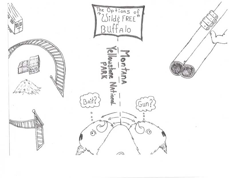 Close to three hundred wild buffalo have been eliminated from the country’s last continuously wild population. Gardiner patrols report at least 141 buffalo in Yellowstone’s Stephens Creek trap, and hunters have killed more than 150 buffalo along Yellowstone’s north and west boundaries. The buffalo migrating across the north boundary are bearing the brunt of the kill, as hundreds more buffalo tend to migrate to these much lower elevation lands during the winter, where if they aren’t killed by hunters along the Park boundary, they are threatened with being captured inside Yellowstone’s trap. At least on the west side, in the Hebgen Basin, while not immune to being killed by hunters, buffalo have half a chance, as the deep snows can make accessing buffalo difficult for hunters and there are private lands where buffalo are welcome and safe. If they do return to Yellowstone, there is no trap awaiting them on the western boundary.