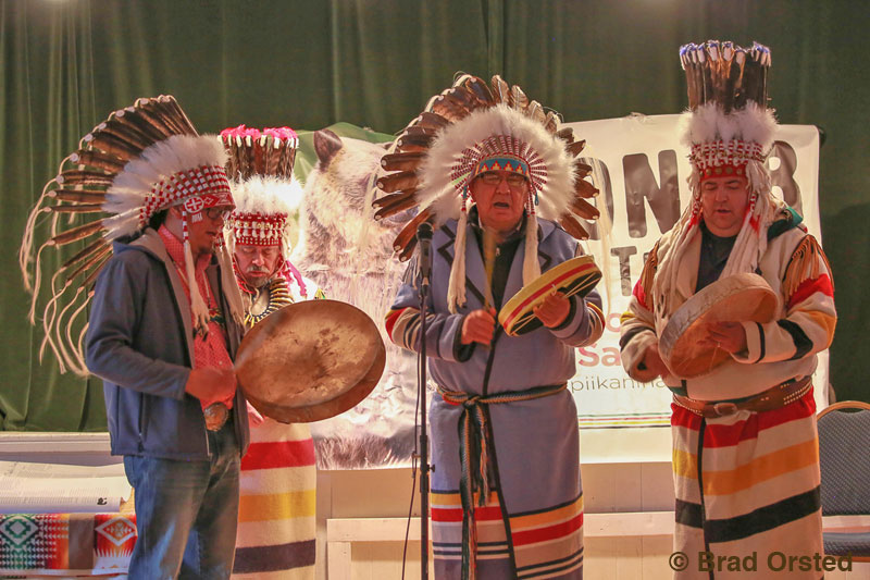 Piikani Blackfoot leaders, Councillor Lowell Horn, Chief Grier, Elder Jim Strikes With A Gun, and Councillor Barnaby Provost. Photo courtesy of Brad Orsted.