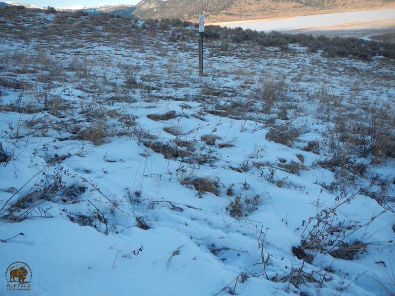 The hunt party’s tracks right next to the Galanis’s “Buffalo Safe Zone” sign. Photo by Don Spates, Buffalo Field Campaign