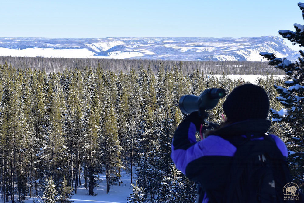 Happy New Year to each and every one of you! We hope you have been having some quality time with friends, family, and other loved ones over this holiday season. The new decade brought a little bit of fresh snow to the region, but there’s still not enough on the ground yet to drive the buffalo to migrate to lower elevations. The only buffalo we are seeing these days are seen through a spotting scope, miles within Yellowstone National Park. Patrols are out every day, doing morning and afternoon patrols, checking all the migration corridors, but not seeing any of the gentle giants.