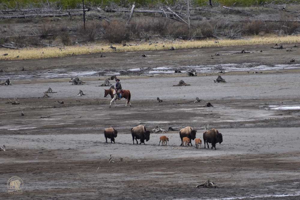 Though much of the land in the Hebgen Basin is open again to wild buffalo, some is still off limits to them. On paper the land is divided: buffalo can go here, but not here. In reality, the buffalo don’t recognize these man-made arbitrary boundaries, and walk the earth as they should. But, in some areas there are consequences. On Tuesday, along the South Side of the Madison River, buffalo were chased off their chosen ground. Representatives from the Montana Department of Livestock, Montana Fish, Wildlife & Parks, USDA-Animal & Plant Health Inspection Service, and U.S. Forest Service descended upon the tranquil morning to chase three moms, three babies, and a yearling off of cattle-free public land within the Gallatin National Forest. The buffalo were run for upwards of five miles before being hazed to the edge of the Madison River, where they were forced to swim across and climb the bluffs to habitat where they can exist in peace. Everywhere should be land where the buffalo can exist in peace; they are the creators and caregivers of these areas and all grasslands and prairie habitats. Where buffalo are restored, entire communities begin to thrive again. Please help us gain more ground for wild, migratory buffalo on the Gallatin National Forest, so that no calf or pregnant mom is ever chased off the lands who are their birthright. Your comments on the Custer-Gallatin National Forest plan revision can help us gain Species of Conservation Concern status for the buffalo and will help expand the areas where they currently roam. Comments are due June 6, 2019. Thank you for being a voice for wild buffalo! If not for you and the many actions you’ve taken over the years, no buffalo would be safe from harassment. Thanks to you, hundreds now are.