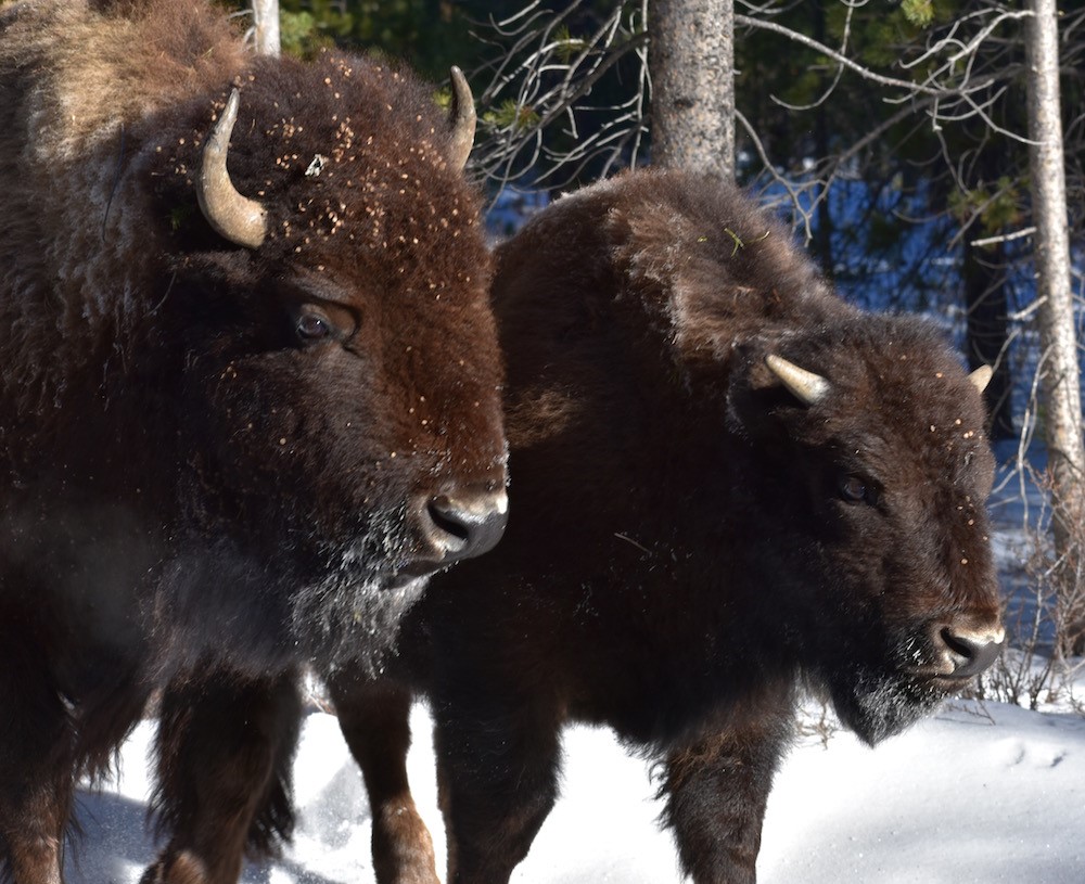 A nice surprise! Two bulls appeared along Highway 191, inside Yellowstone, about 10 miles north of the Hebgen Basin. Buffalo are rarely seen here anymore, but maybe times are changing. If you’re traveling between Bozeman and West Yellowstone, keep your eyes out for these big boys. Photo by Jaedin Medicine Elk, Buffalo Field Campaign.
